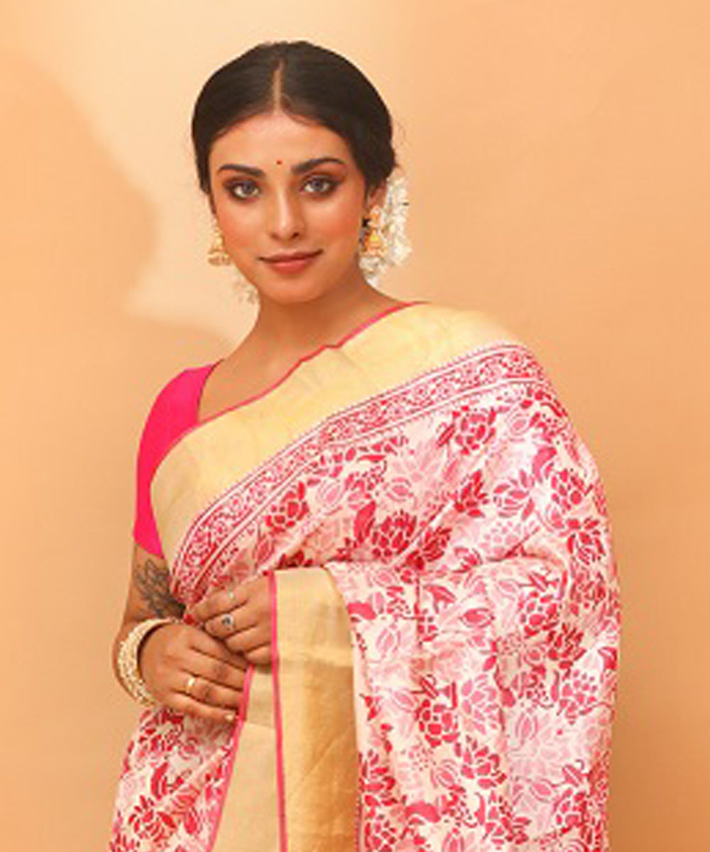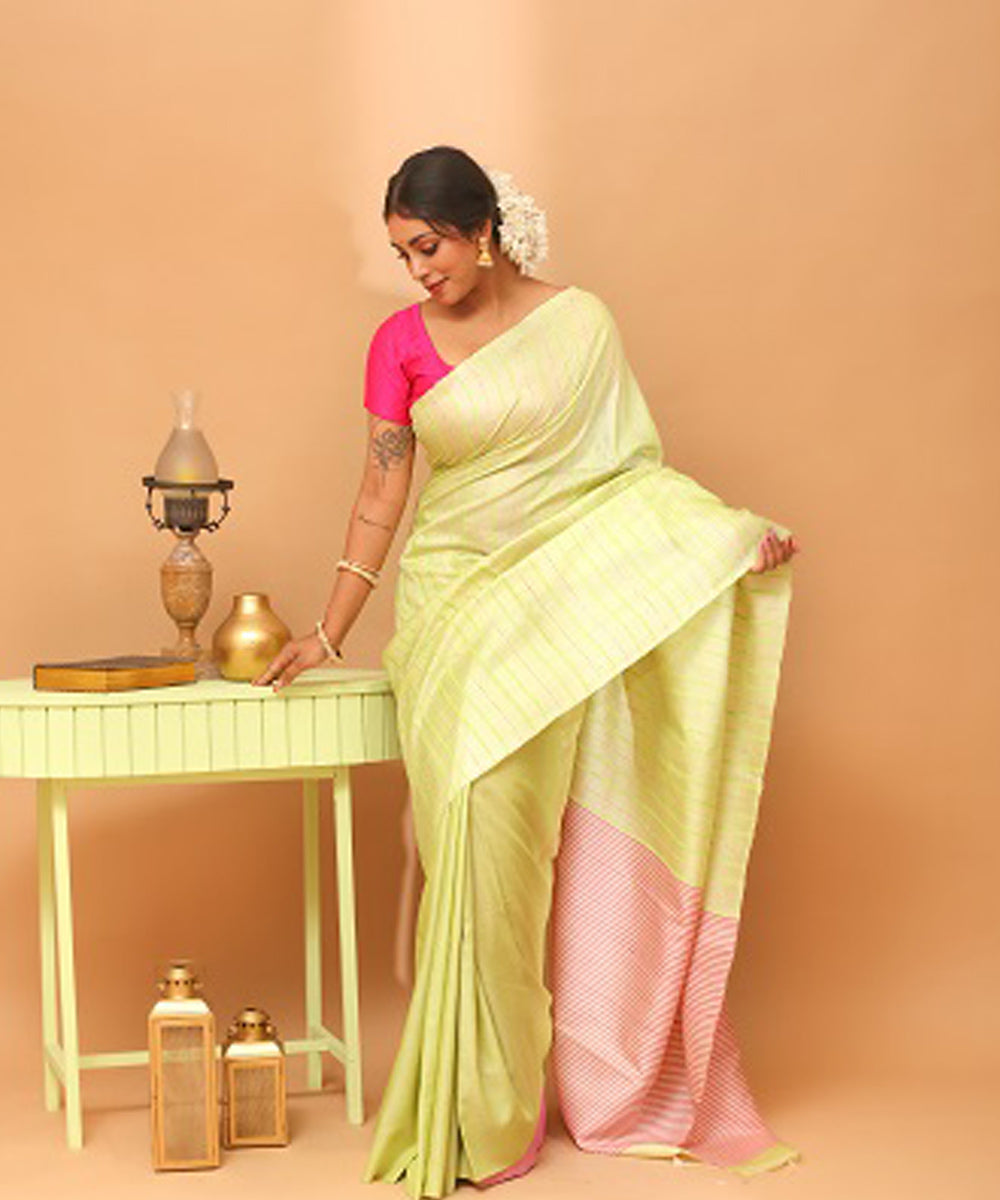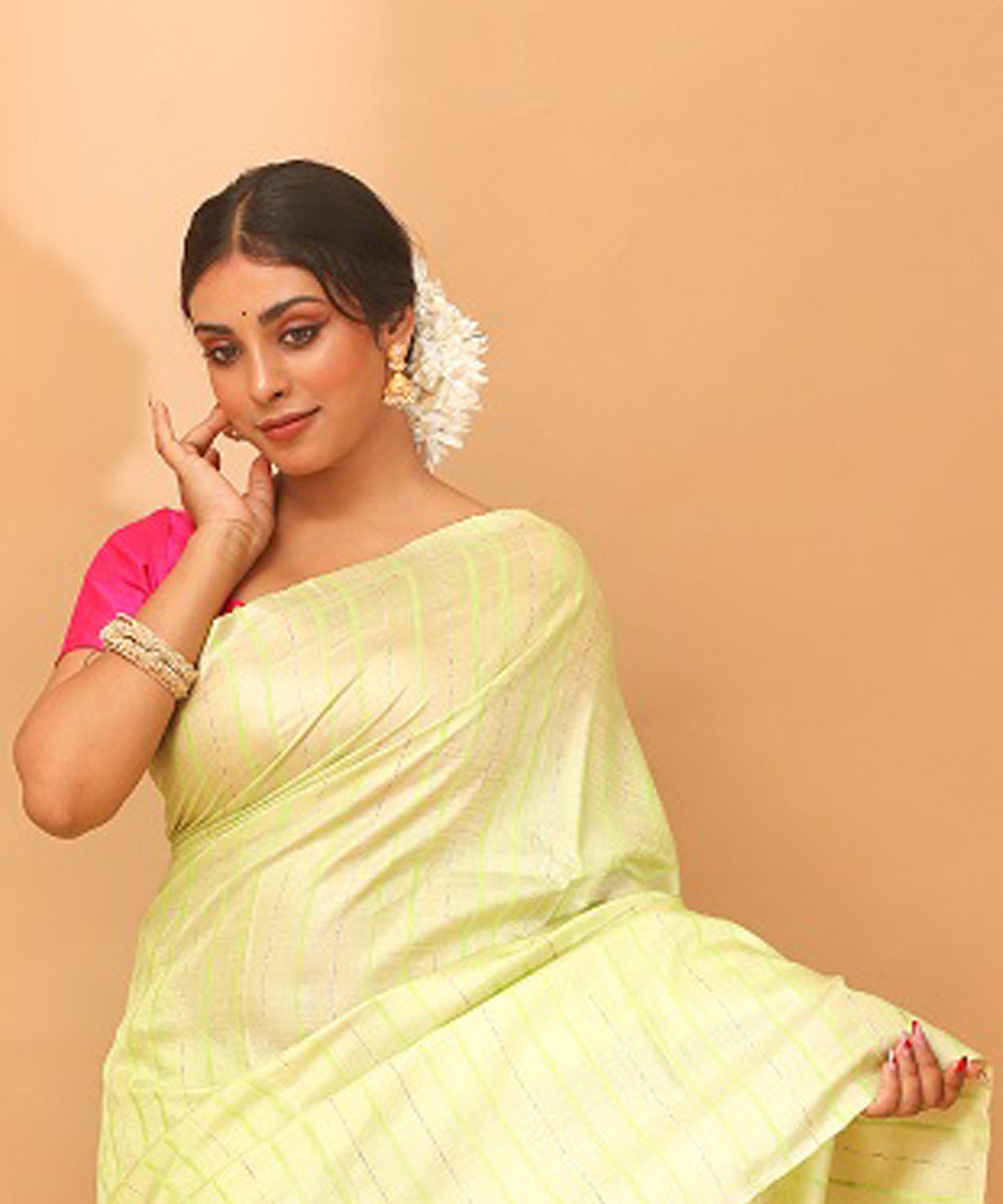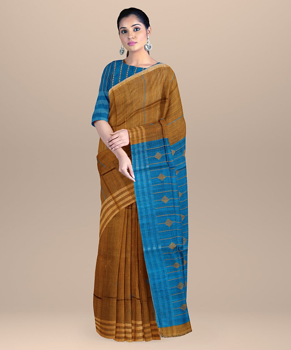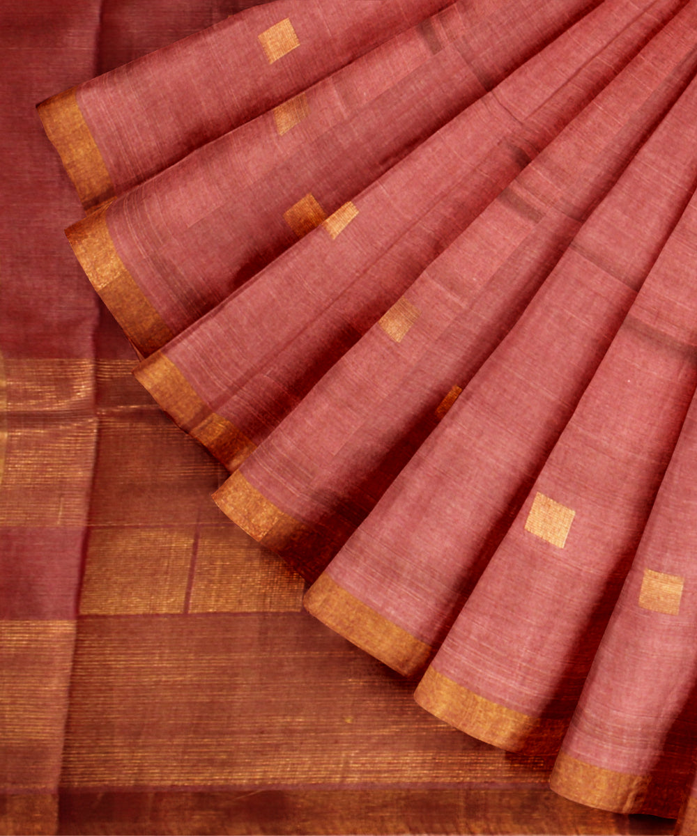 A collection of all handwoven tussar silk sarees featuring plain workwear sarees, printed casual wear sarees and also grand embroidery embellished saree varieties. Explore the textured finish of tussar silk yarns from the north and eastern craft clusters of India.