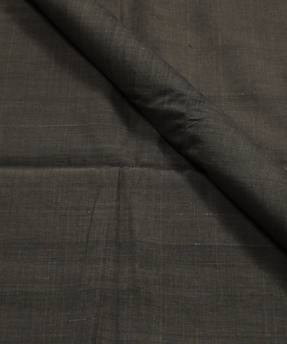Plain fabric in black cotton yarns, woven by the weavers at the Mangalgiri cluster of Andhra Pradesh. This fabric is skilfully designed and handwoven on a handloom to interweave fine drawn warp and weft cotton yarns. The black warp and weft yarns interwoven on a handloom brings out a stunning mixture of black and grey shades on the surface of this fabric.